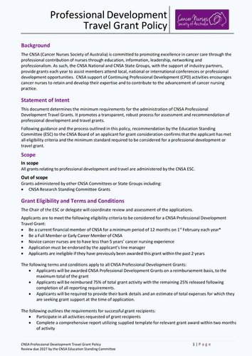 Below you will find an outline of key information for CNSA Professional Development Travel Grants including eligibility, timelines, application process and requirements for all successful recipients including terms and conditions.